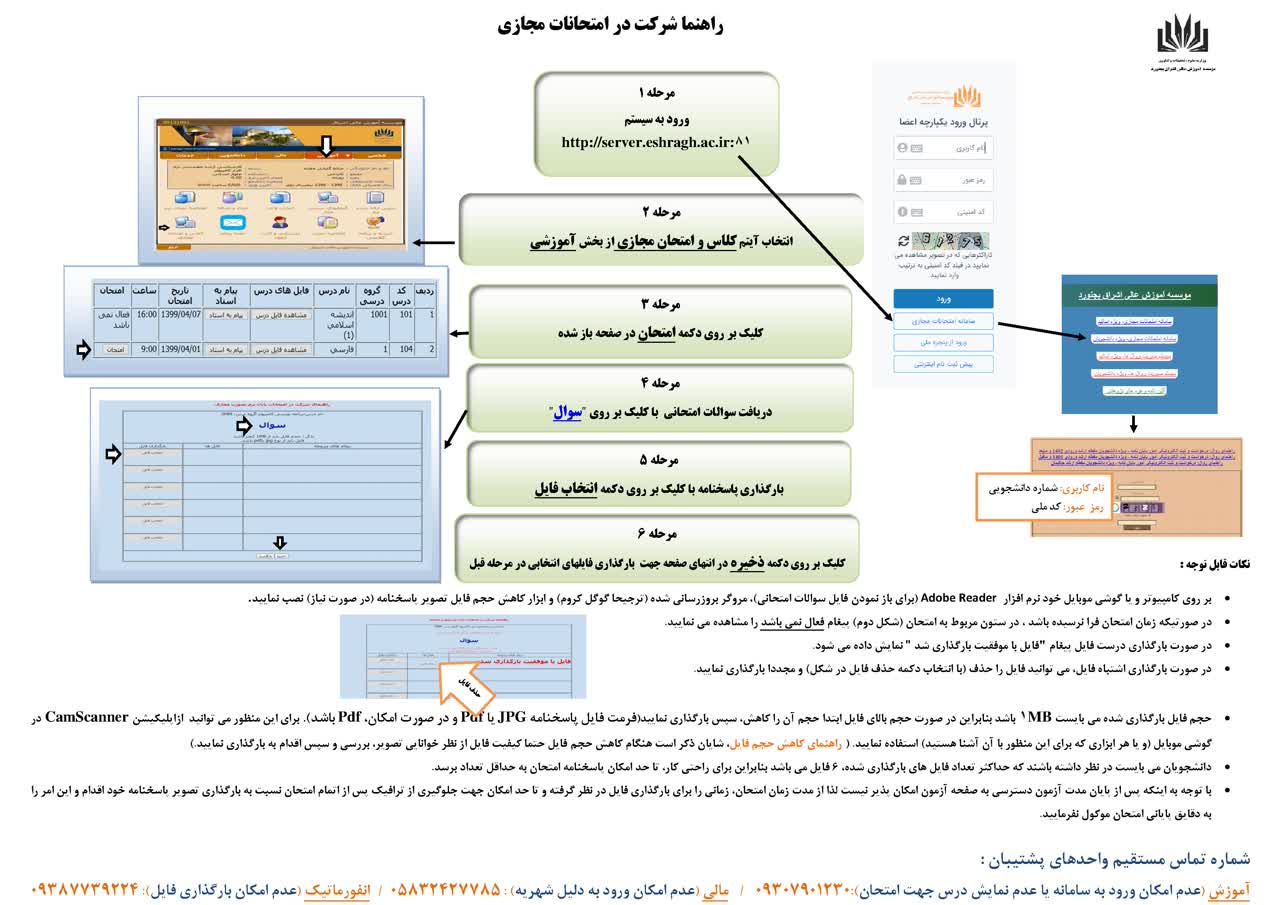 6- در صورت داشتن هرگونه سوال در مورد کارنامه یا نمرات و یا مشکل در اتصال به